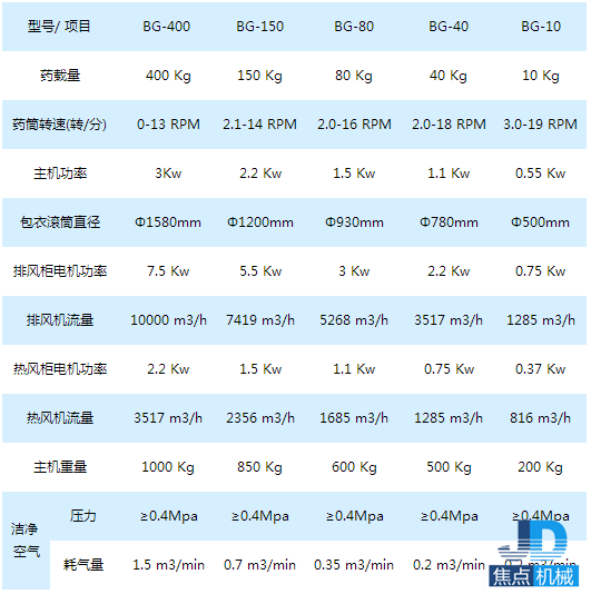 a、包衣鍋體 有孔或無孔、容量、材質(zhì)、拋光情況、正反方螺旋導(dǎo)流方式、配片劑在線溫度控制