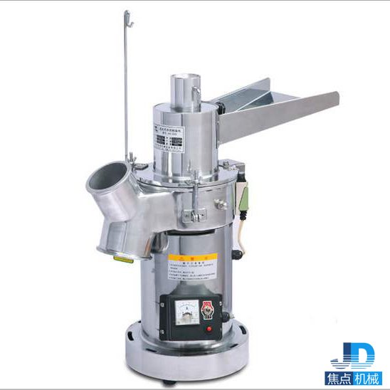 物料由加料進入粉碎室,通過高速旋轉的刀片進行粉碎,調節分級輪于分級盤的距離來達到所要求的物料細度,高速旋轉的風葉把達到要求的物料從粉碎室引到集料箱布袋產生的粉塵由吸塵箱收集,該機組按GMP標準設計,結構簡單,操作清理方便,噪音小,產量高,除電機,骨架外,其他全部用優質不銹鋼304板材制造,粉碎過程中無粉塵飛揚。