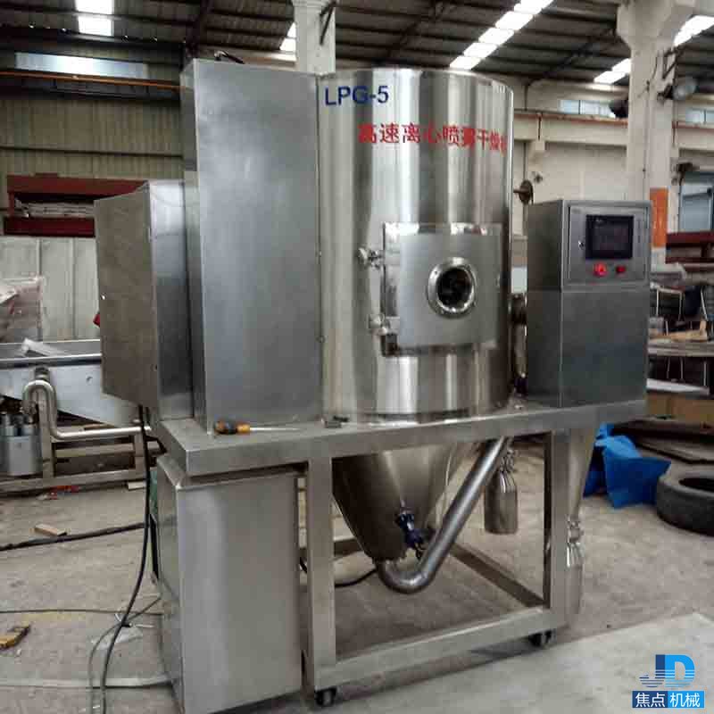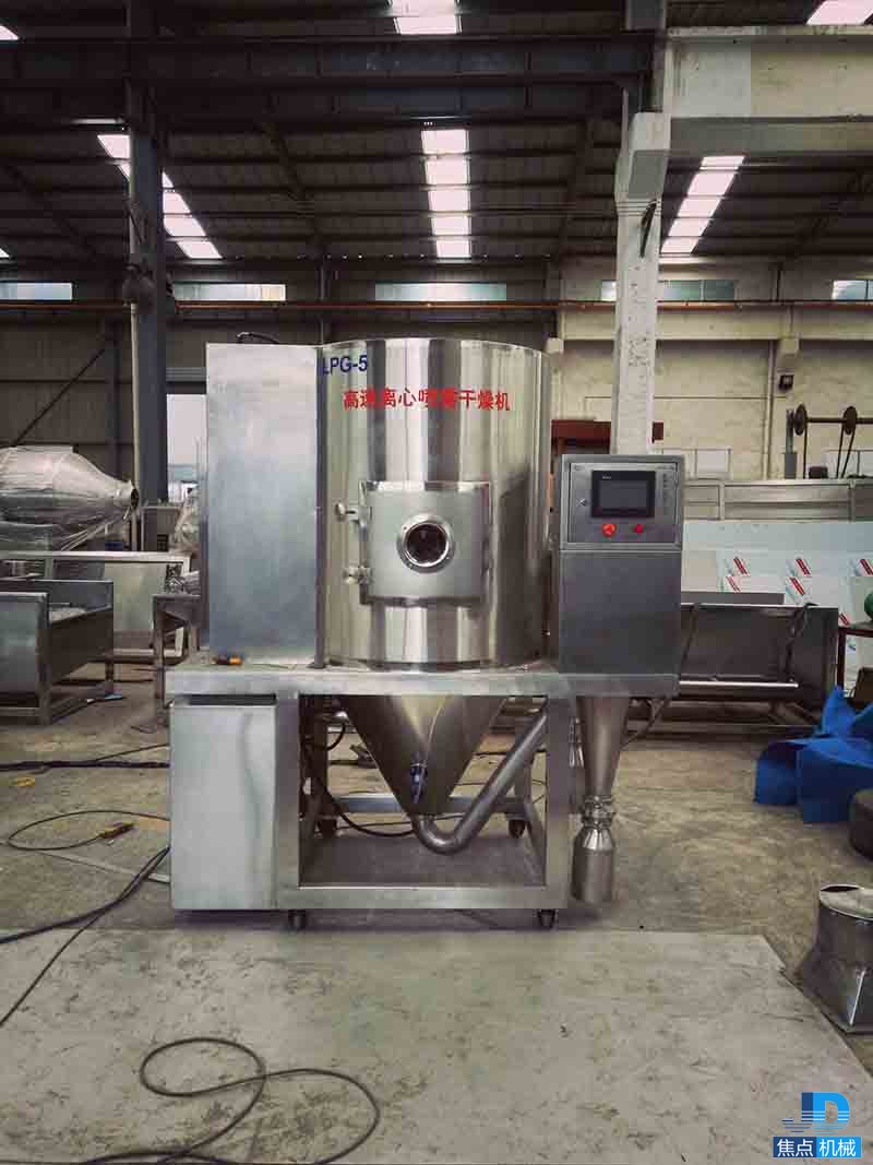1、高速離心噴霧干燥機設備主要為:塔體、塔架、加熱器、送風機、耐高溫過濾器、輸送管道、旋風分離器、引風機、噴霧機、塔內氣掃裝置、集中收料、旋風除塵、尾氣排放、電控等組成。本設備是針對中藥提取液的特點,專門設計制造的植物提取液和中藥浸膏噴霧干燥專用機組。結合國內外先進的同類干燥技術及公司技術人員長期積累的實踐經驗進行的專業制作,設備具有以下特點。
