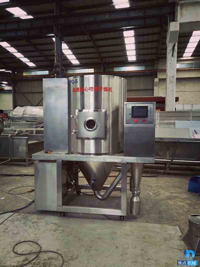 ③干燥機配置高速電動霧化器,高轉速1800-24000轉每分鐘(變頻器控制調速)用料為304不銹鋼材質,該霧化器具有轉速穩定,工作效率高,適用于長時間連續工作,噴霧盤為特種設計,霧化器冷卻方式為水循環。