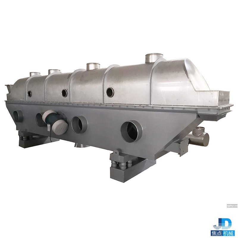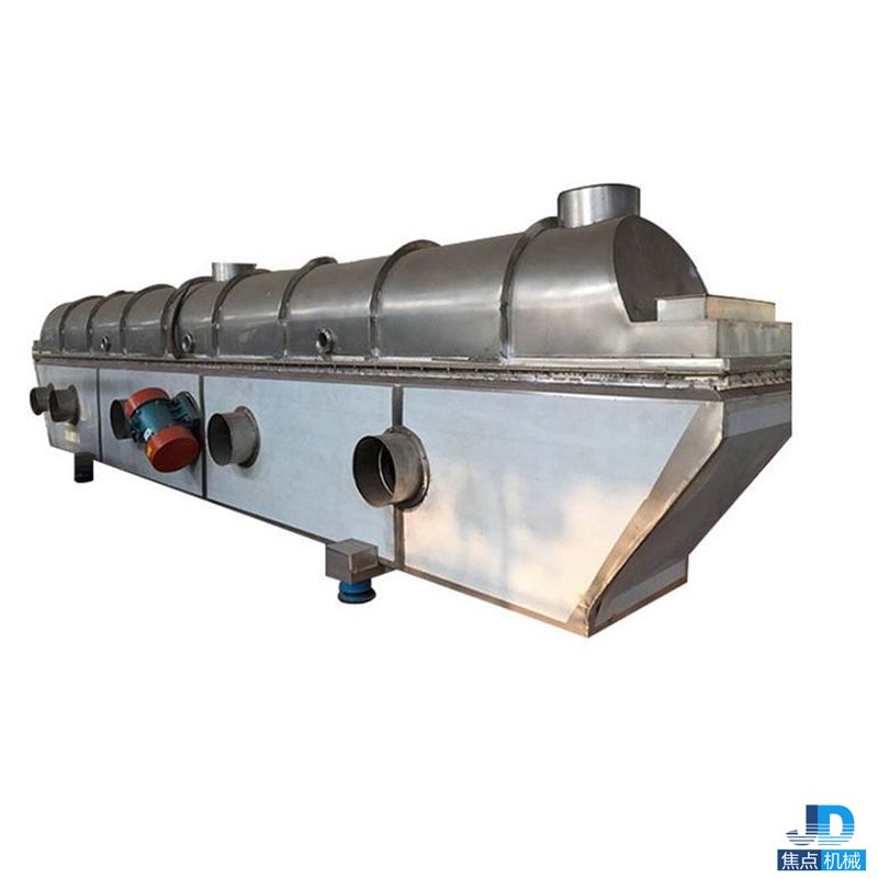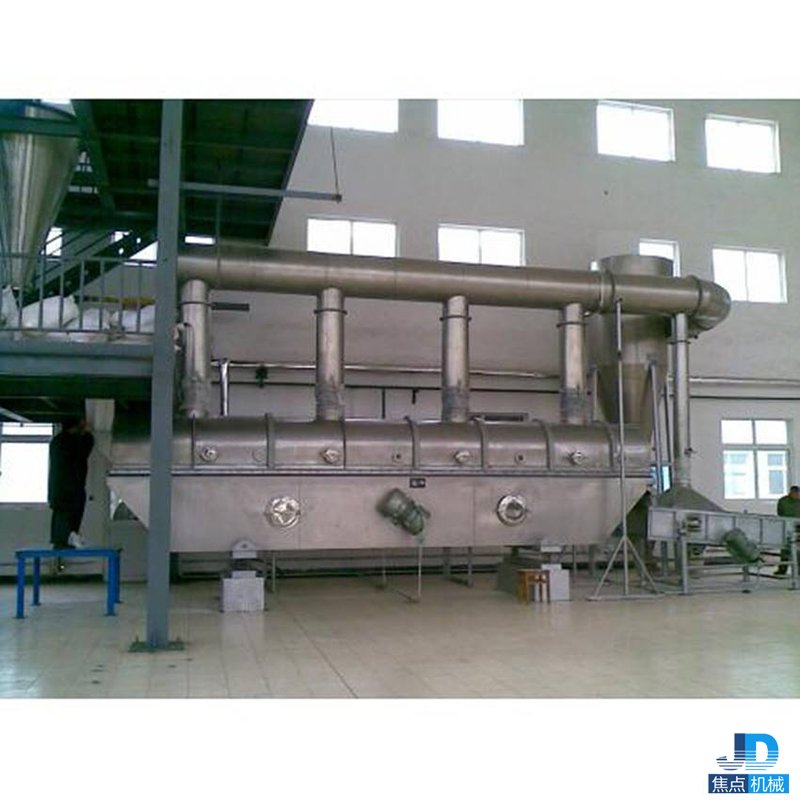 物料自進料口進入機內,在振動力作用下,物料沿水平方向拋擲向前連續運動。熱風向上穿過流化床和濕物料換熱,濕空氣經旋風分離器除塵后由排風口排出,干燥物料由排料口排出。